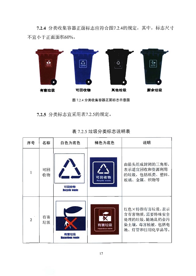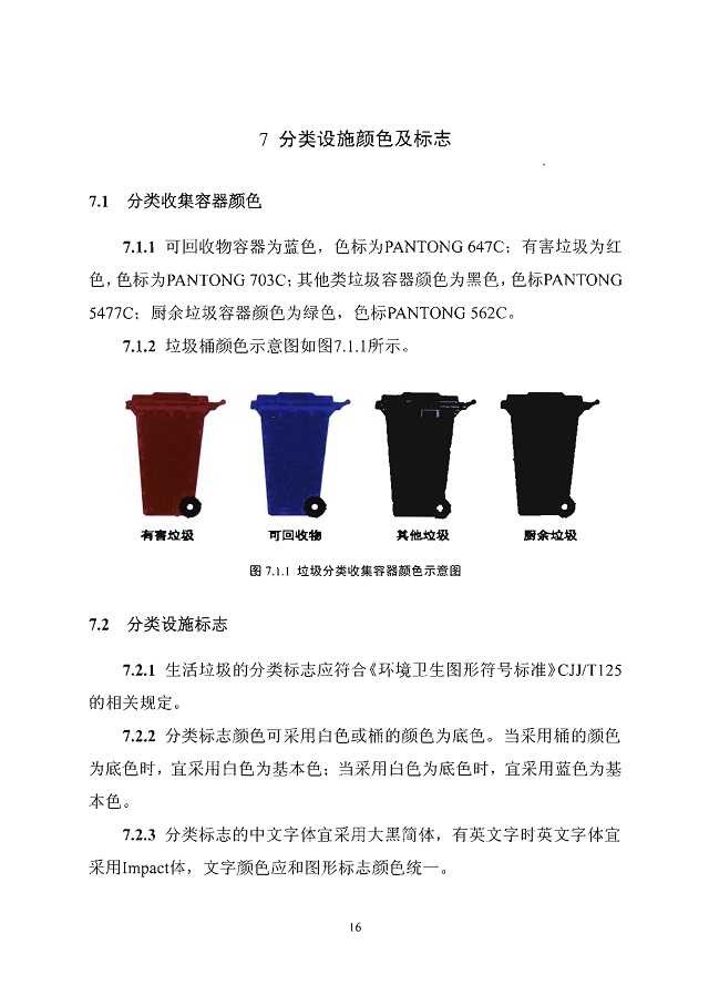 本指南規(guī)定了生活垃圾分類投放容器、分類設施配置、分類收運車輛、 分類作業(yè)和分類標志等內(nèi)容。