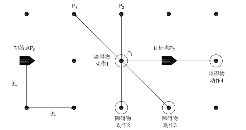 動(dòng)作4:在機(jī)器人運(yùn)行路徑上,將障礙物移動(dòng)到位置P1,以阻止機(jī)器人從初始位置到達(dá)目標(biāo)位置。