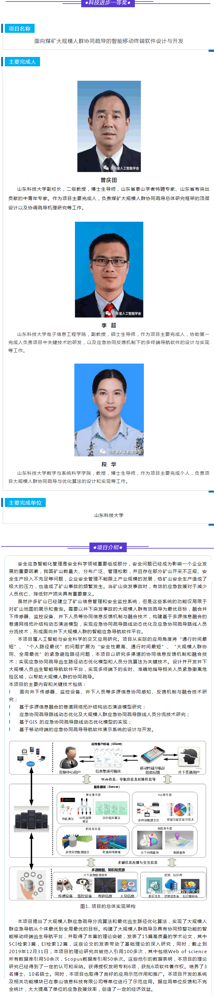 「人工智能科技獎」科技進步獎-面向煤礦大規模人群協同疏導的智能移動終端軟件設計與開發