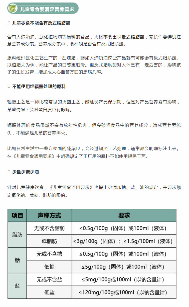 兒童零食和普通零食不一樣