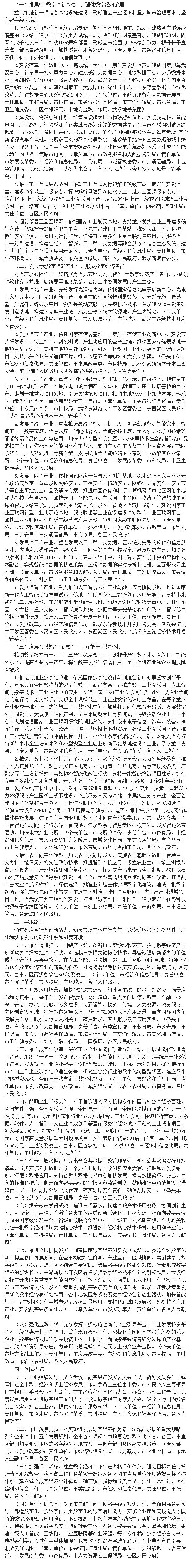 堅(jiān)持以“兩化三融合”為主線,突破性發(fā)展數(shù)字產(chǎn)業(yè)化、產(chǎn)業(yè)數(shù)字化,通過實(shí)施5大數(shù)字新基建、7大數(shù)字新產(chǎn)業(yè)、3大數(shù)字新融合工程,促進(jìn)人工智能、區(qū)塊鏈、云計(jì)算、大數(shù)據(jù)、5G等數(shù)字經(jīng)濟(jì)新興技術(shù)與實(shí)體經(jīng)濟(jì)、城市治理、社會民生深度融合,力爭用3年時(shí)間,全市數(shù)字經(jīng)濟(jì)取得突破性成果,數(shù)字經(jīng)濟(jì)增加值占GDP的比重超過50%,成為全國5G先用先試城市,創(chuàng)建國家數(shù)字經(jīng)濟(jì)創(chuàng)新發(fā)展試驗(yàn)區(qū),建成全國數(shù)字經(jīng)濟(jì)一線城市,成為數(shù)字經(jīng)濟(jì)產(chǎn)業(yè)鏈、價(jià)值鏈、創(chuàng)新鏈上的重要節(jié)點(diǎn),助推形成超大城市社會治理現(xiàn)代化的武漢模式。