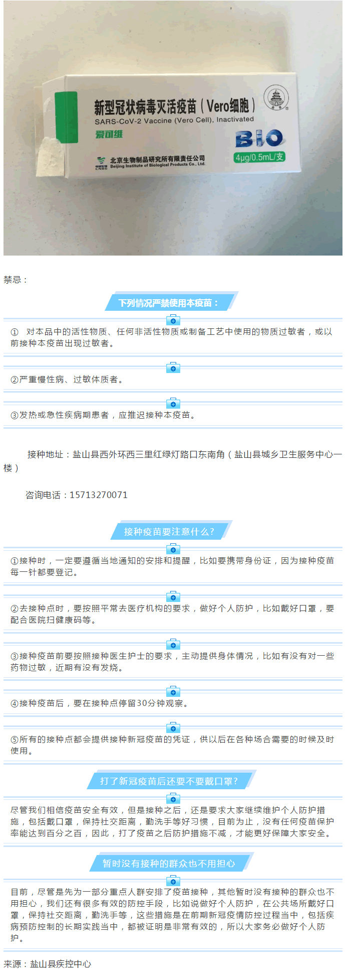 本次接種的疫苗來自北京生物制品研究所有限責任公司,需接種兩針,間隔14-28天。