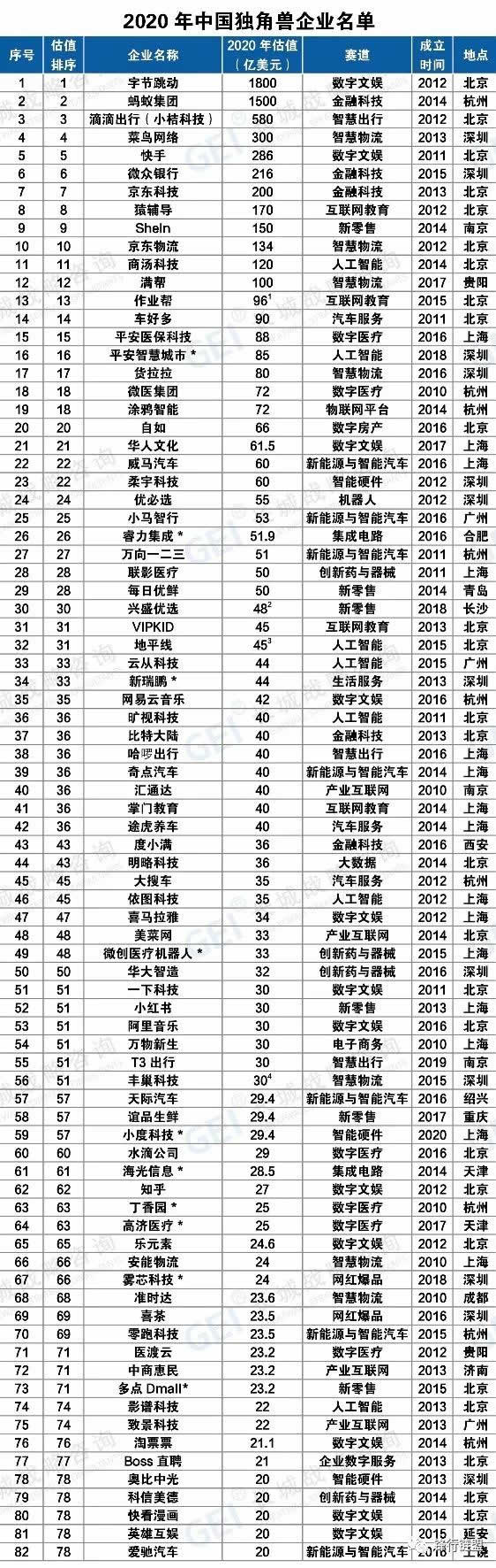 2021獨角獸榜:字節跳動D一、螞蟻D二、SpaceX第三