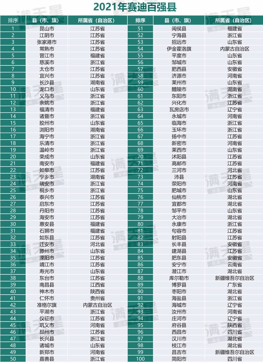 2021年賽迪百強縣