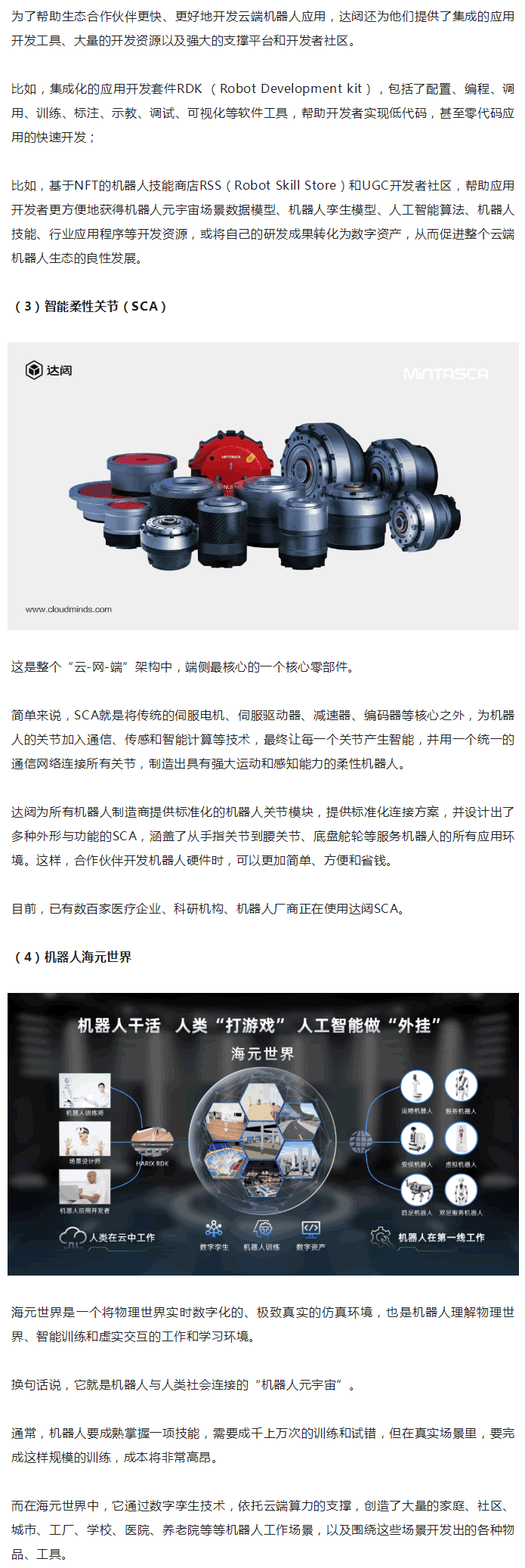 這樣,生態(tài)中的其他機(jī)器人公司,就可以在人工智能技術(shù)和安全網(wǎng)絡(luò)連接技術(shù)這些投入G、風(fēng)險大的L域,節(jié)約研發(fā)投入,節(jié)省研發(fā)時間,集中有限的資源和精力,面向用戶需求,加速機(jī)器人應(yīng)用,快速實(shí)現(xiàn)云端機(jī)器人部署。