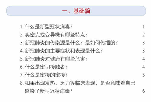 電子書涉及市民關(guān)心的100個(gè)問(wèn)題,涵蓋病毒知識(shí)、個(gè)人防護(hù)、疫苗接種、病毒檢測(cè)、清潔消毒、食品安全、科學(xué)鍛煉、心理調(diào)適、健康管理、出行防護(hù)、中醫(yī)藥防治、居家隔離醫(yī)學(xué)觀察等防疫要點(diǎn),從新G病毒的基礎(chǔ)知識(shí)到病毒檢測(cè)的不同方法,從居家清潔的細(xì)節(jié)要點(diǎn)到預(yù)防消毒的注意事項(xiàng),從日常起居的方方面面到調(diào)適身心的點(diǎn)點(diǎn)滴滴。