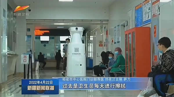 哈密市中心醫院門診部導醫熱依漢古麗·薩力說:“現在有了智能消毒機器人,設定好程序后,可以無死角的自動進行消殺,對我們和患者帶來了更方便的就醫環境。”