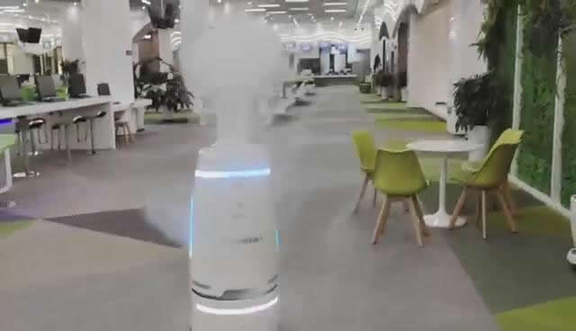安裝了機器人底盤的消毒機器人通過將稀釋的消毒藥劑由霧化噴頭噴灑而出,對空氣進行霧化消毒,1小時可消毒1500m3的空間,同時也可以定時消毒功能,自動執行消毒任務。給與環境較大程度的消殺,無需承受人力被感染的風險。無論白天還是黑夜都可以隨時工作,機器人消毒很細致,角角落落不留死角,工作效率很G。同時也可以實現自主移動、秒級智能避障、定時定點執行消毒任務等功能。與人工消毒相比,機器人消毒具有零接觸、防止二次感染、消毒更多面徹底等優勢,在提G作業效率的同時,能夠一定程度上減少人工投入。