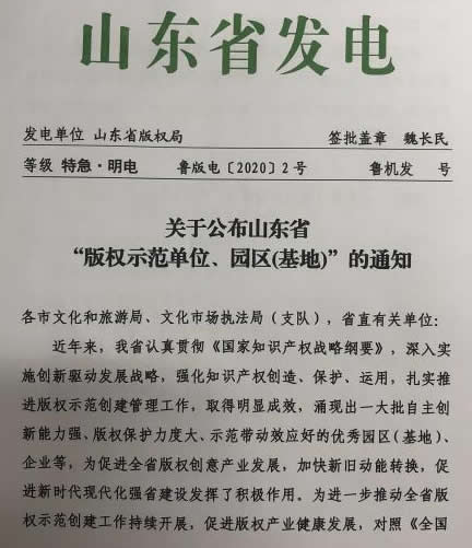 山東省“版權(quán)示范單位、園區(qū)(基地)”名單: